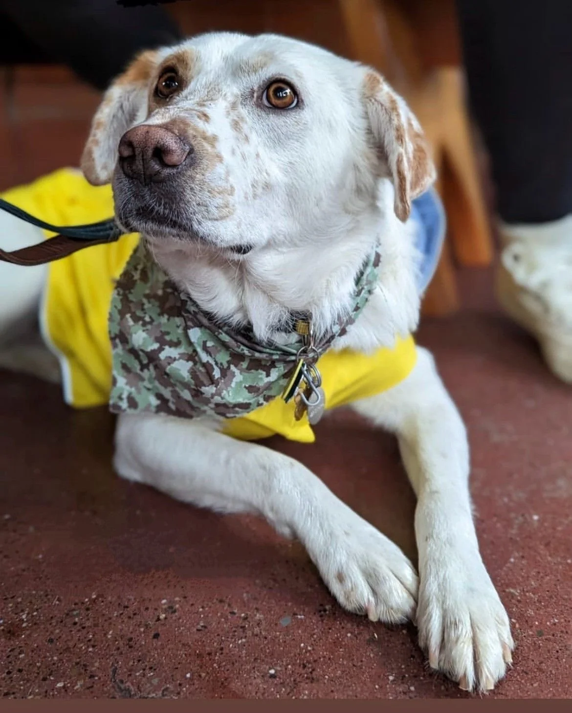 Patient and kind. Loves long walks and sleeping. Will ditch his owners for strangers with treats.