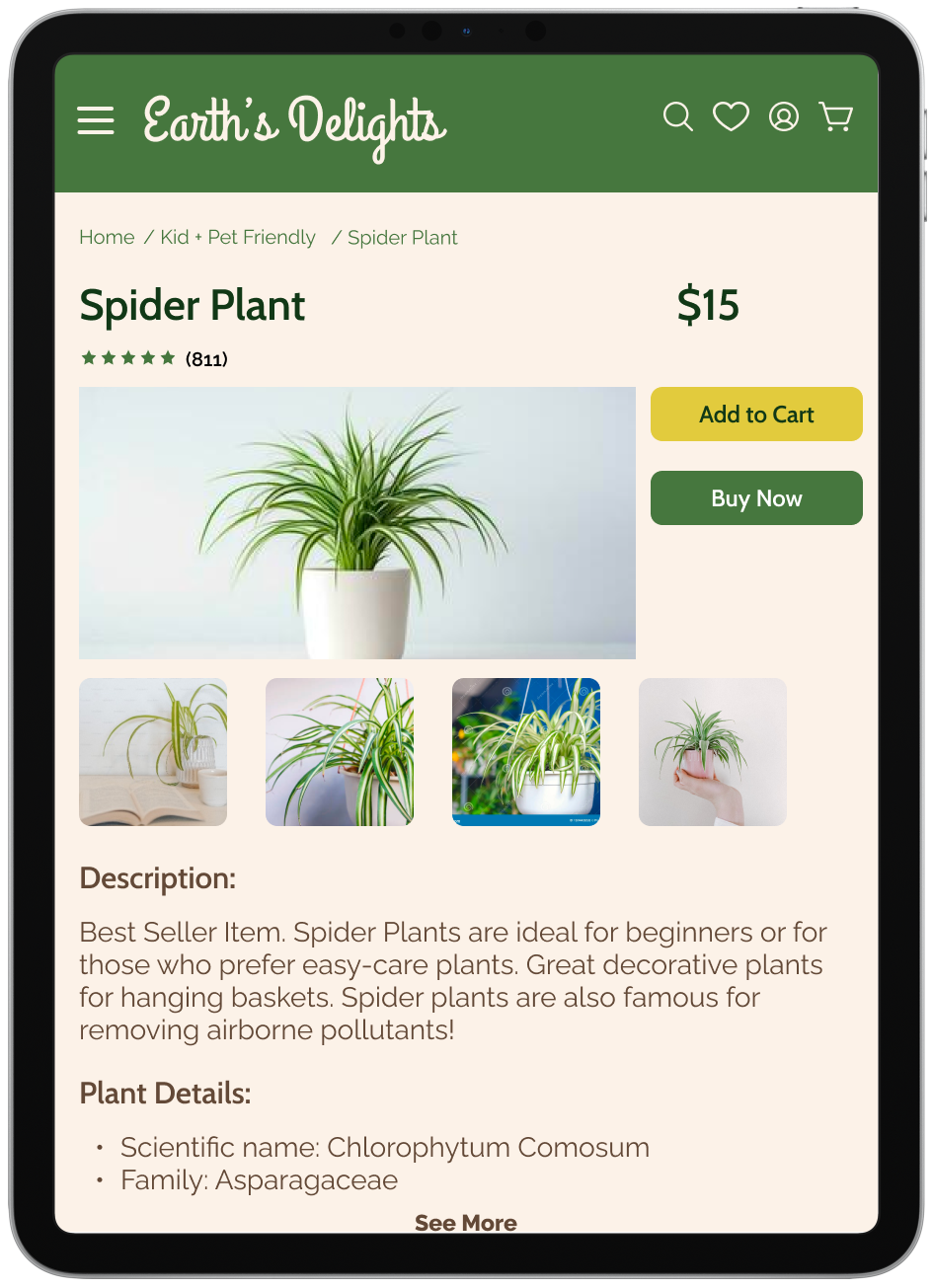 Through user research, I wanted to create a website that had proper information architecture so users can have a positive shopping experience. Being a plant person myself, I know that plants are complicated to raise depending on how much knowledge an owner has, so I wanted to craft an experience that catered to users at any stage of their plant journey, whether they’re beginners or experts.