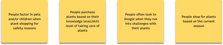 The goal of the research was to understand more about the behaviors and personality of a plant enthusiasts, the challenges and enjoyment of plant ownership, how users shop for plants, and what the expectations are for an online shopping experience.