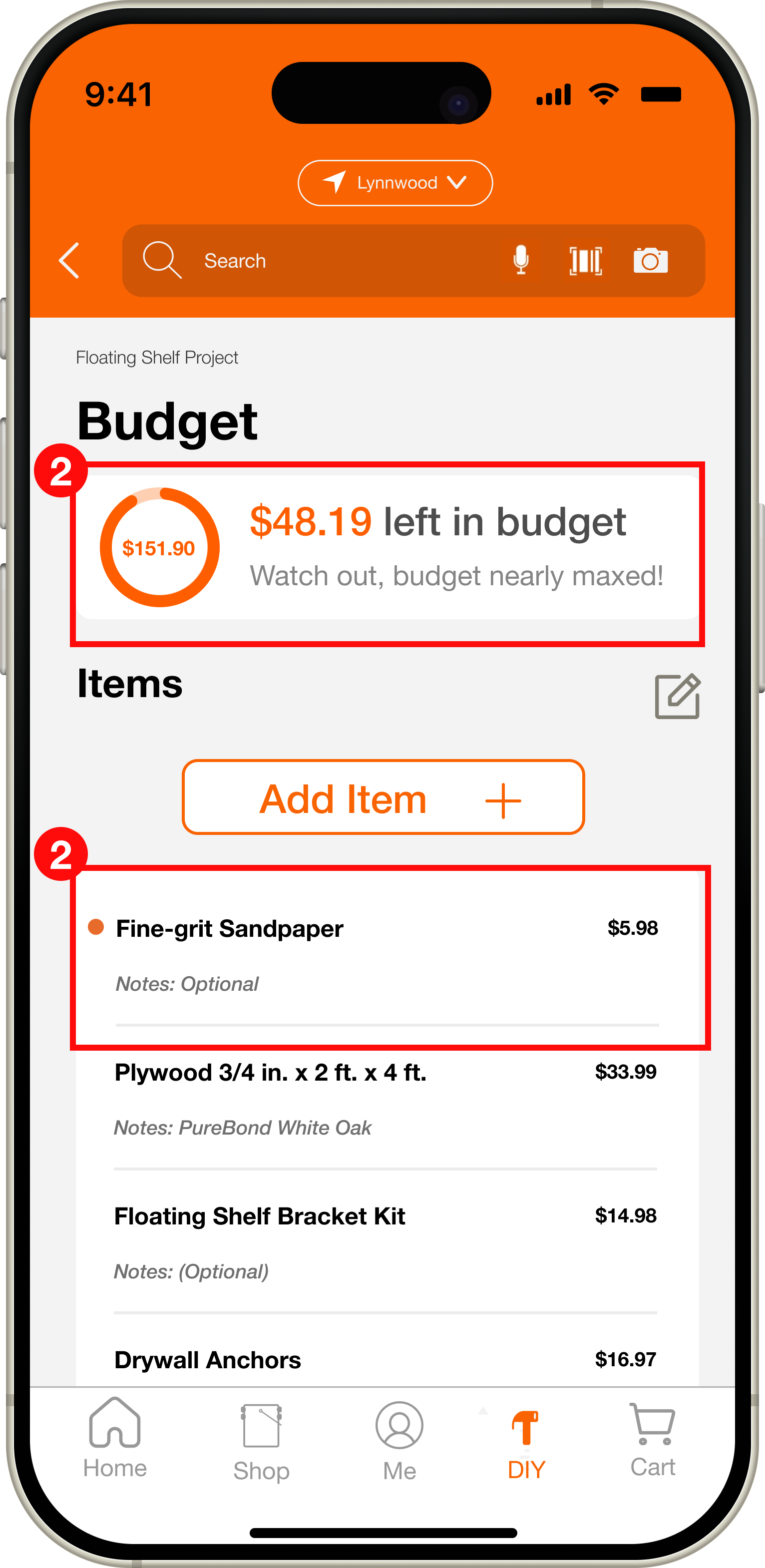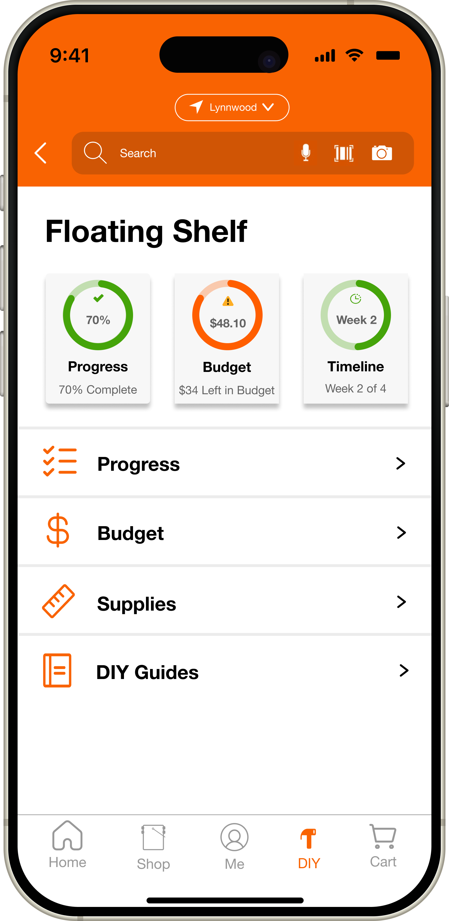 User Research and Product Design for a Home Depot Mobile App That Simplifies DIY Project Tracking and Budgeting