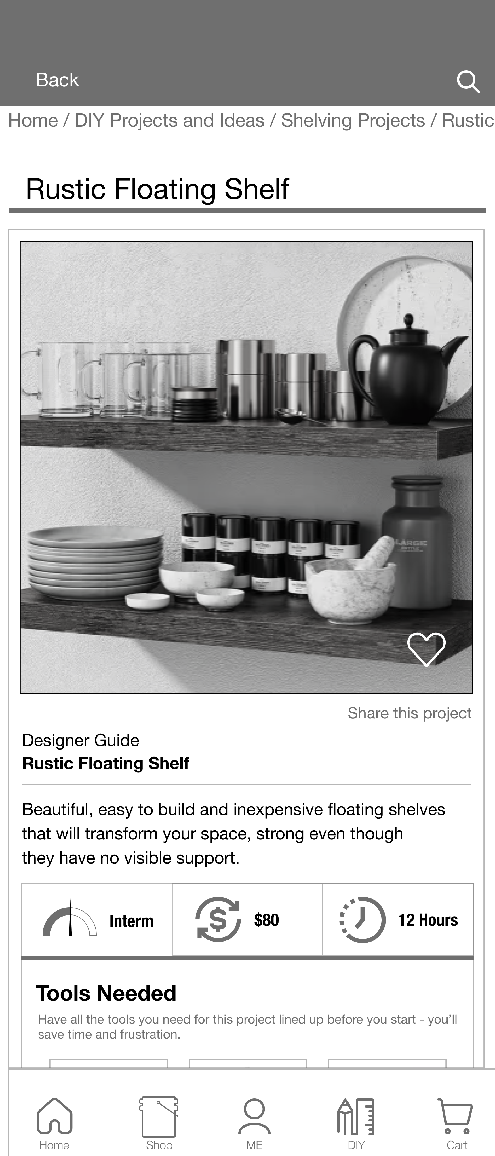 Project Summary: I led research and eventually took over mobile design for a school project that focused on keeping DIYers organized and on track to complete projects.