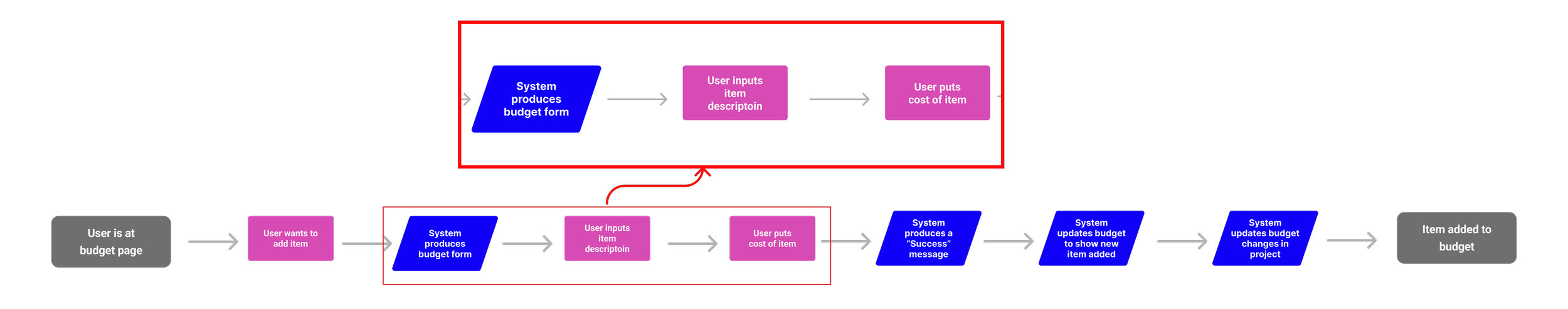 Next, I outlined the experience of DIYers keeping track of their project budget, showing how updating project expenses can encourage consistent engagement
