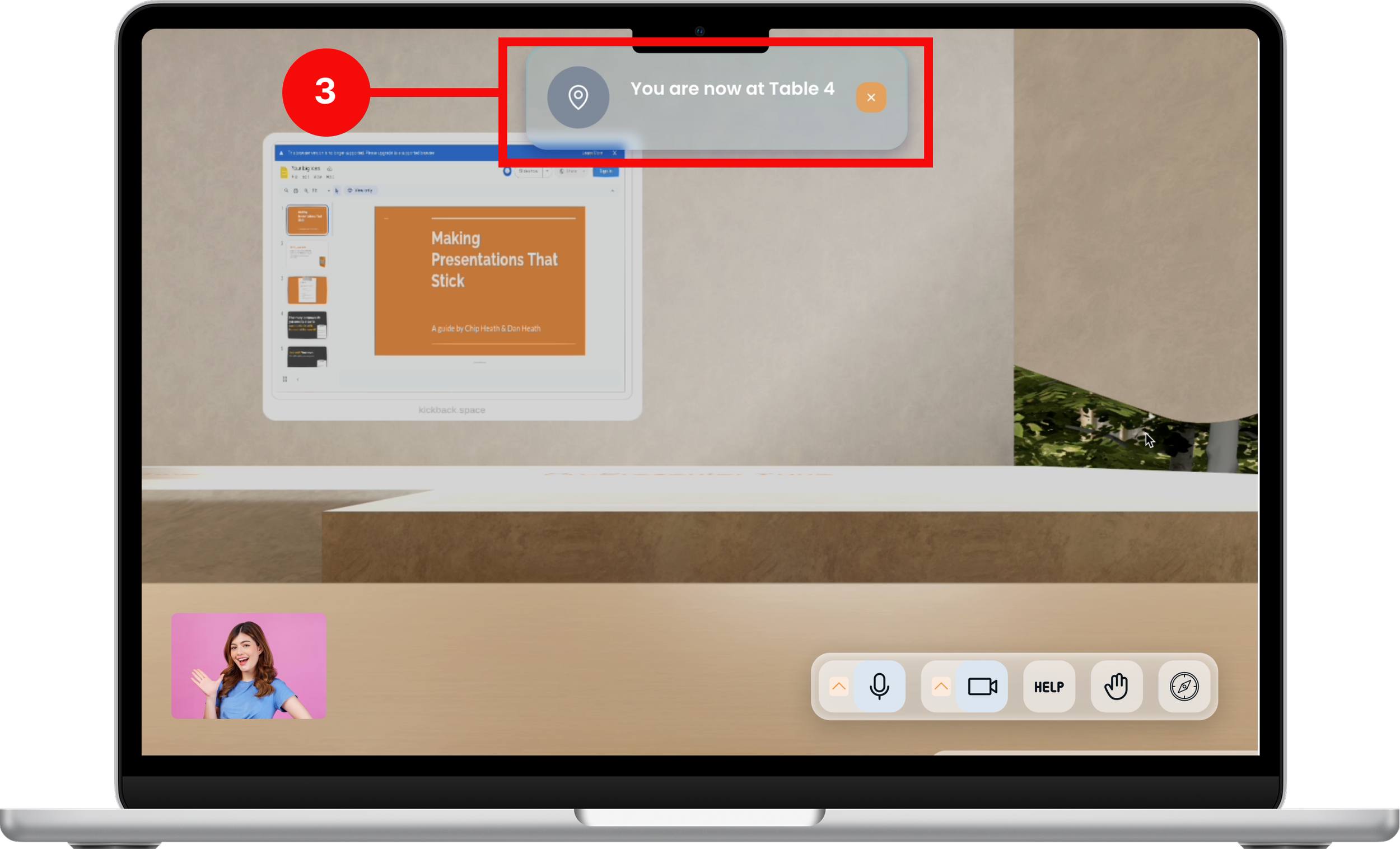 Kick Back Space is a virtual meeting space that uses spatial audio and immersive design to encourage meaningful participation and real-time interaction
