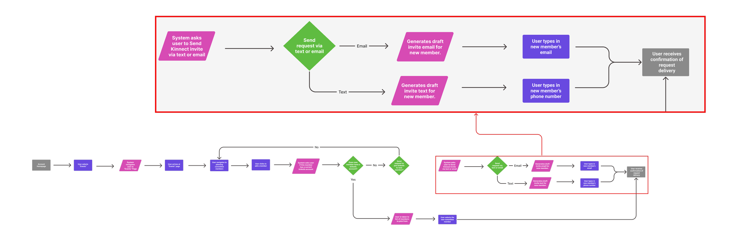 With no existing flows to build from, Kinnect gave us the opportunity to address friction early, so we used our “How Might We” ideas to shape prospective user flows that prioritized clarity, contribution, and culturally meaningful planning