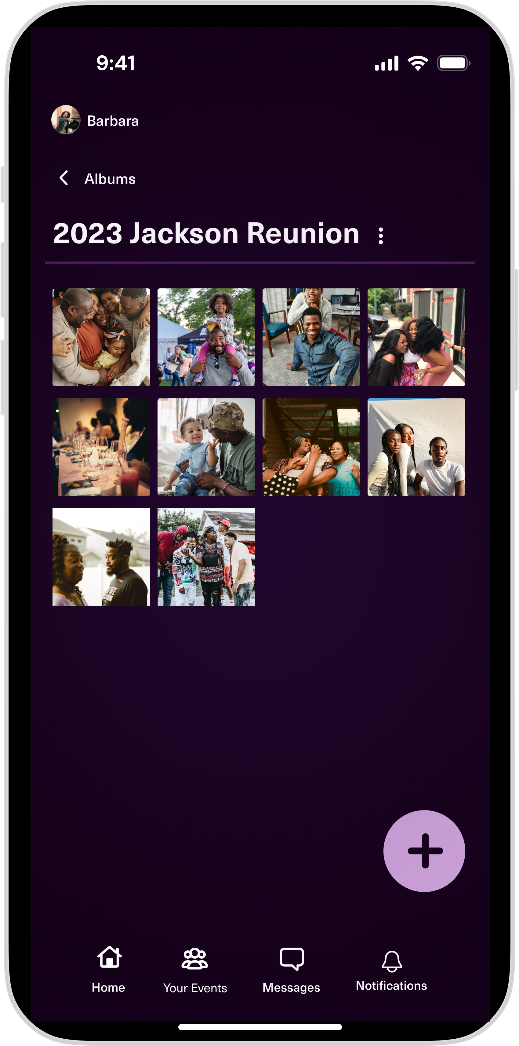 Creating and sharing photo albums: Encouraging family connection through shared memories and collaborative event content.