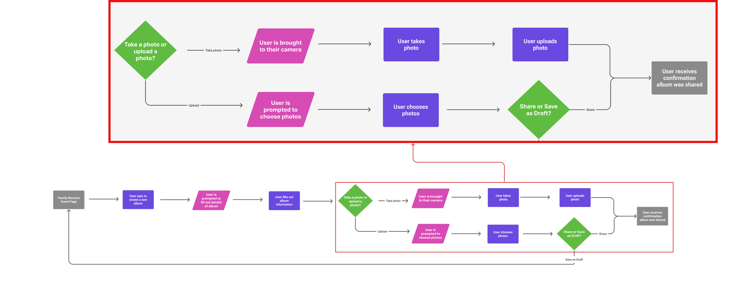 We mapped prospective user flows from planners’ challenges to envision how Kinnect could make tasks approachable, collaborative, and culturally meaningful while supporting multi-generational engagement